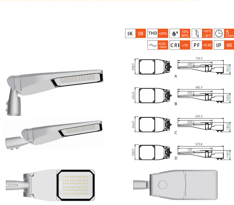 5 years warranty 50w 80w 100w 150w 240w led street light, IP66 waterproof 3000k 6000k city led road lighting