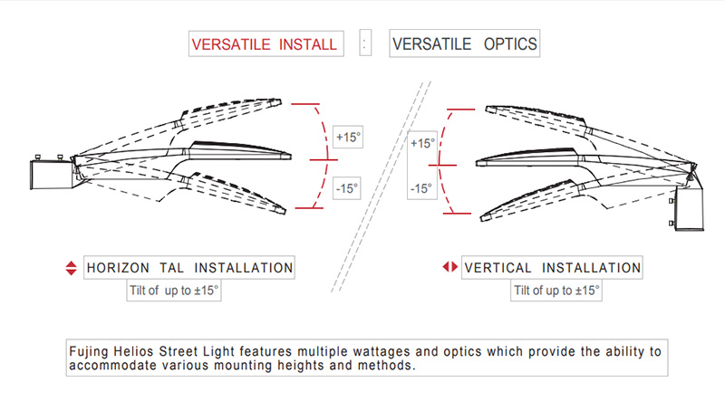 - 水平および垂直に設置でき、角度調整は±15°です。