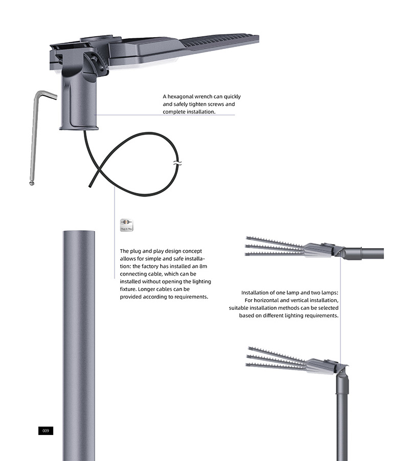 - 道路、広場などの屋外照明場所に使用されます。